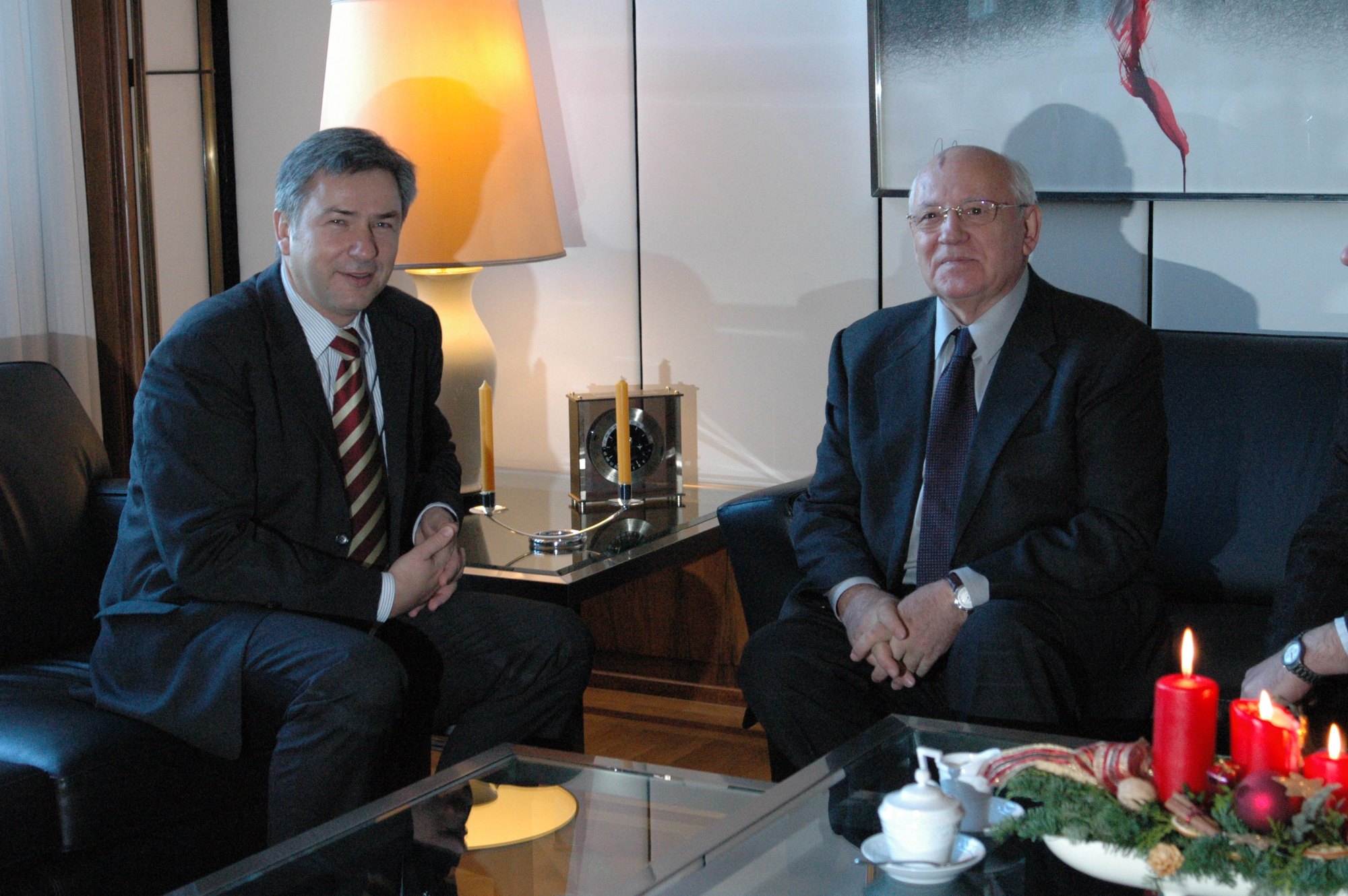 Născut în anul 1931, Mihail Gorbaciov s-a făcut remarcat prin preluarea puterii Uniunii Sovietice în anul 1985. Este cel mai bine cunoscut pentru reformele benefice care au dus la sfârșitul Războiului Rece, dar și la încetarea monopolului pe care Partidul Comunist al URSS îl avea înn viața cotidiană. Pentru activitatea sa reușește să primească în anul 1990 Premiul Nobel pentru Pace.